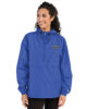 Protect yourself from the elements with this Champion packable jacket. This wind and rain resistant polyester jacket with a detailed embroidery design has a practical hood, front kangaroo pocket, and zipped pouch pocket which you can pull out and use to scrunch the jacket into for convenient storage.